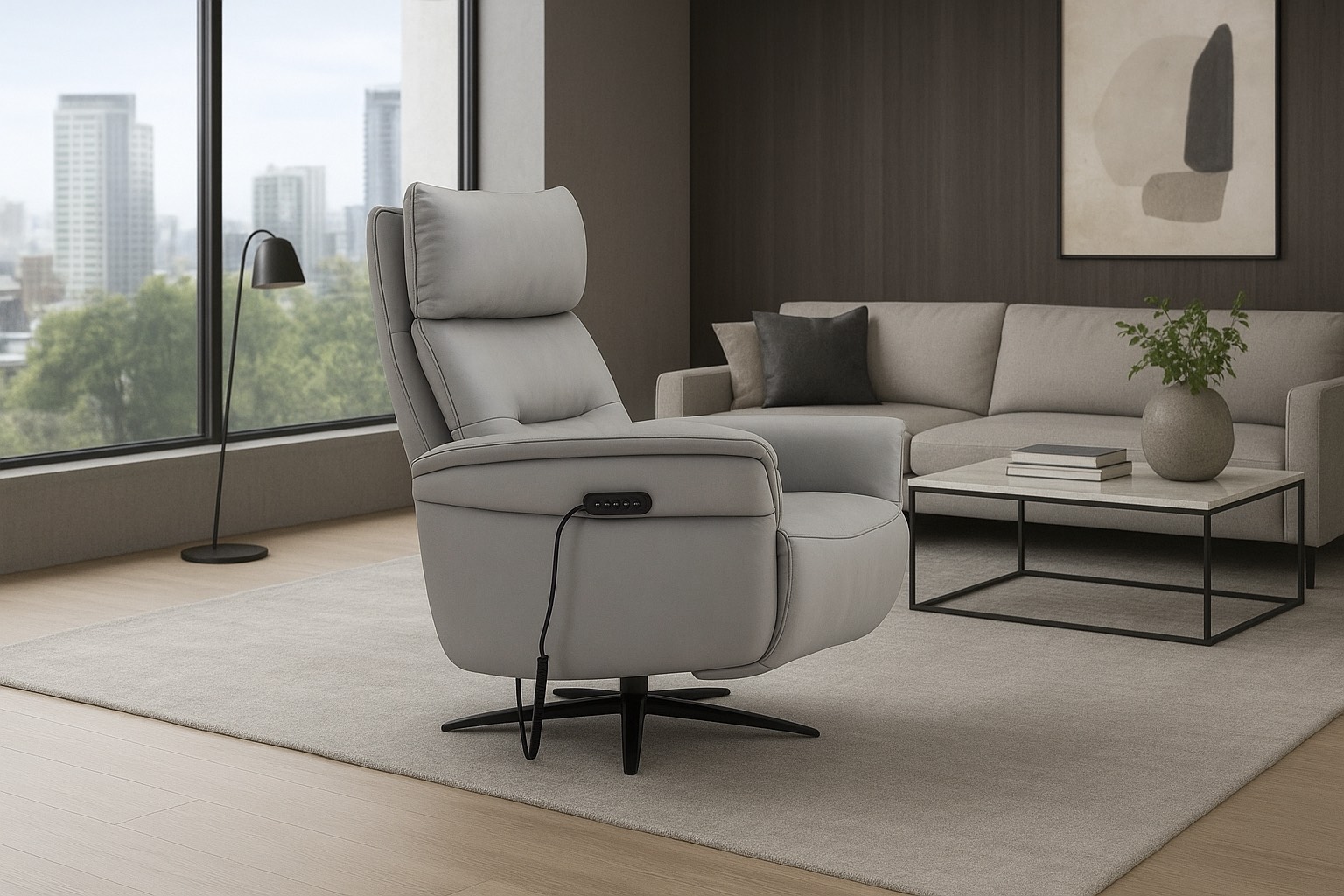 כורסאת טלויזיה חשמלית עם שלושה מנועים נפרדים – אחד להטיית הגב, אחד להרמת הרגליים ואחד למנח רגליים גבוה במיוחד למצב ZERO GRAVITY . הכורסא גם מגיעה עם משענת ראש מתכווננת המעניקה תמיכה מדויקת לצוואר ולראש, ומנגנון ייחודי המאפשר התאמה אישית של גובה המושב לנוחות מקסימלית – חוויית ישיבה חלומית ממש.