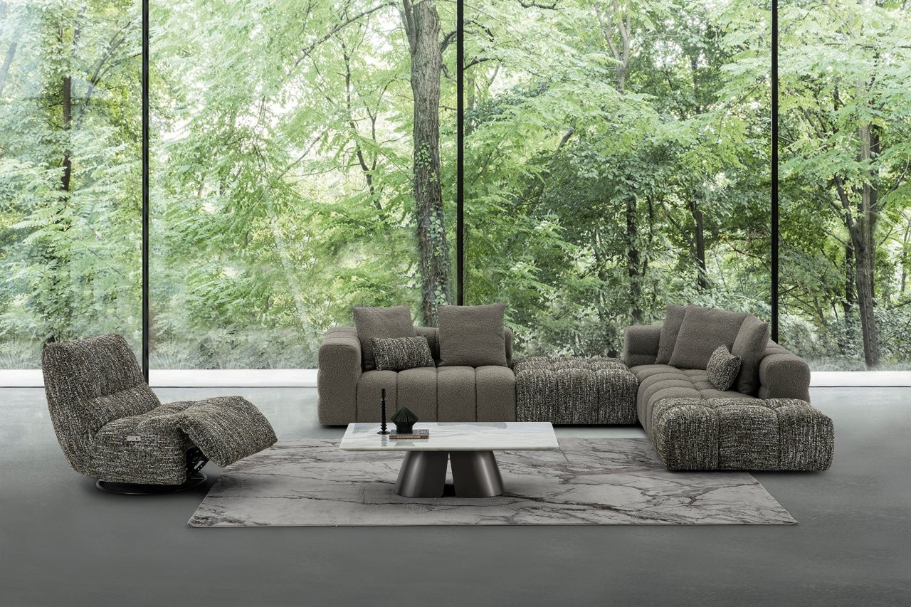 מערכת זו מרגישה נכון מהרגע הראשון – רכה כמו ענן, אלגנטית ומלאת נוכחות, וממלאת את הסלון בסטייל ייחודי עם אווירה נעימה ומלטפת ונראית כמו תכשיט במרכז חלל המגורים.