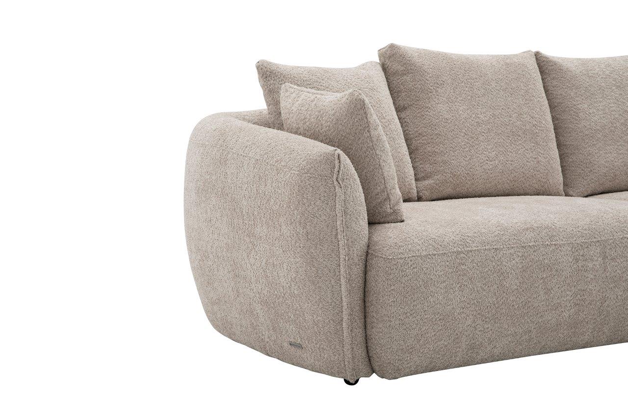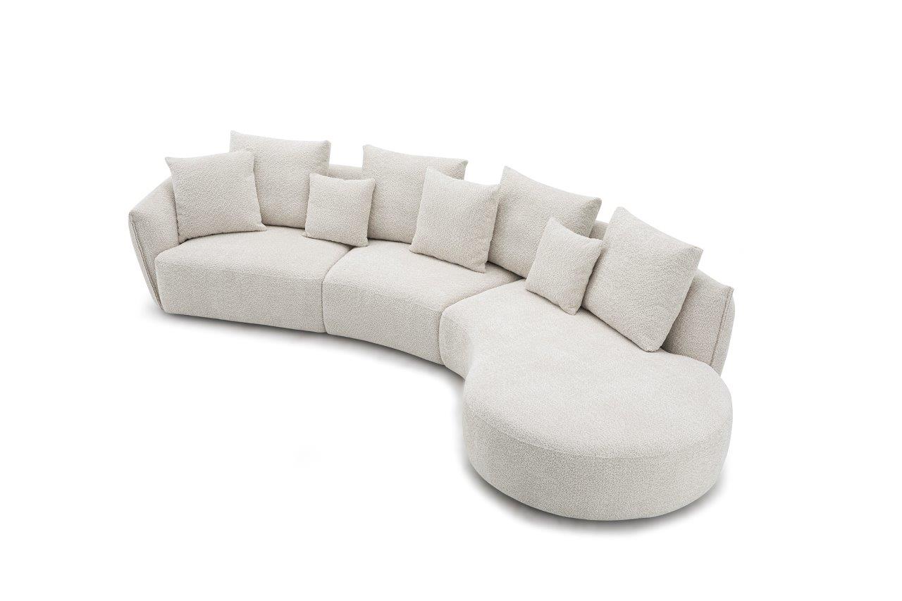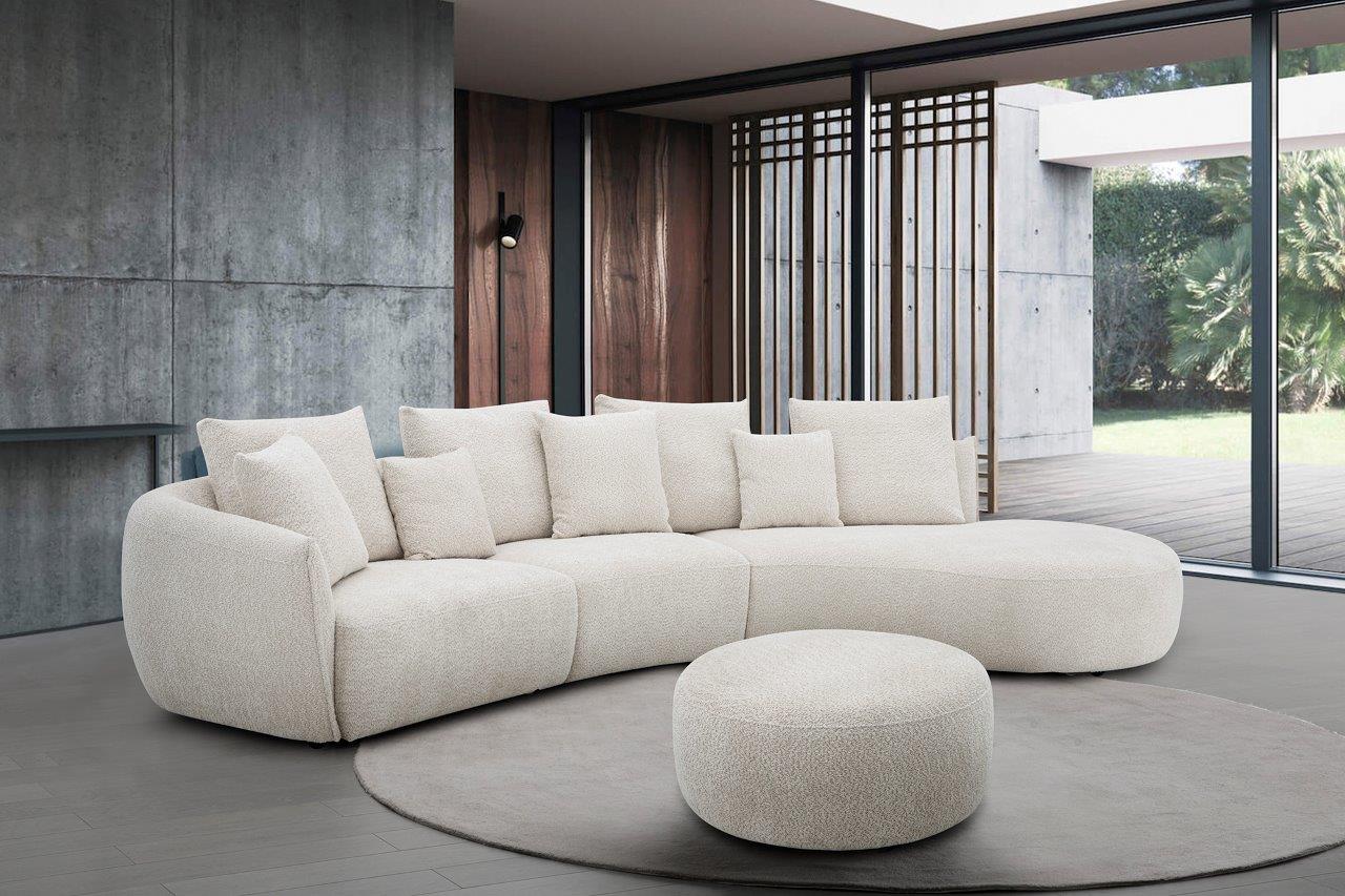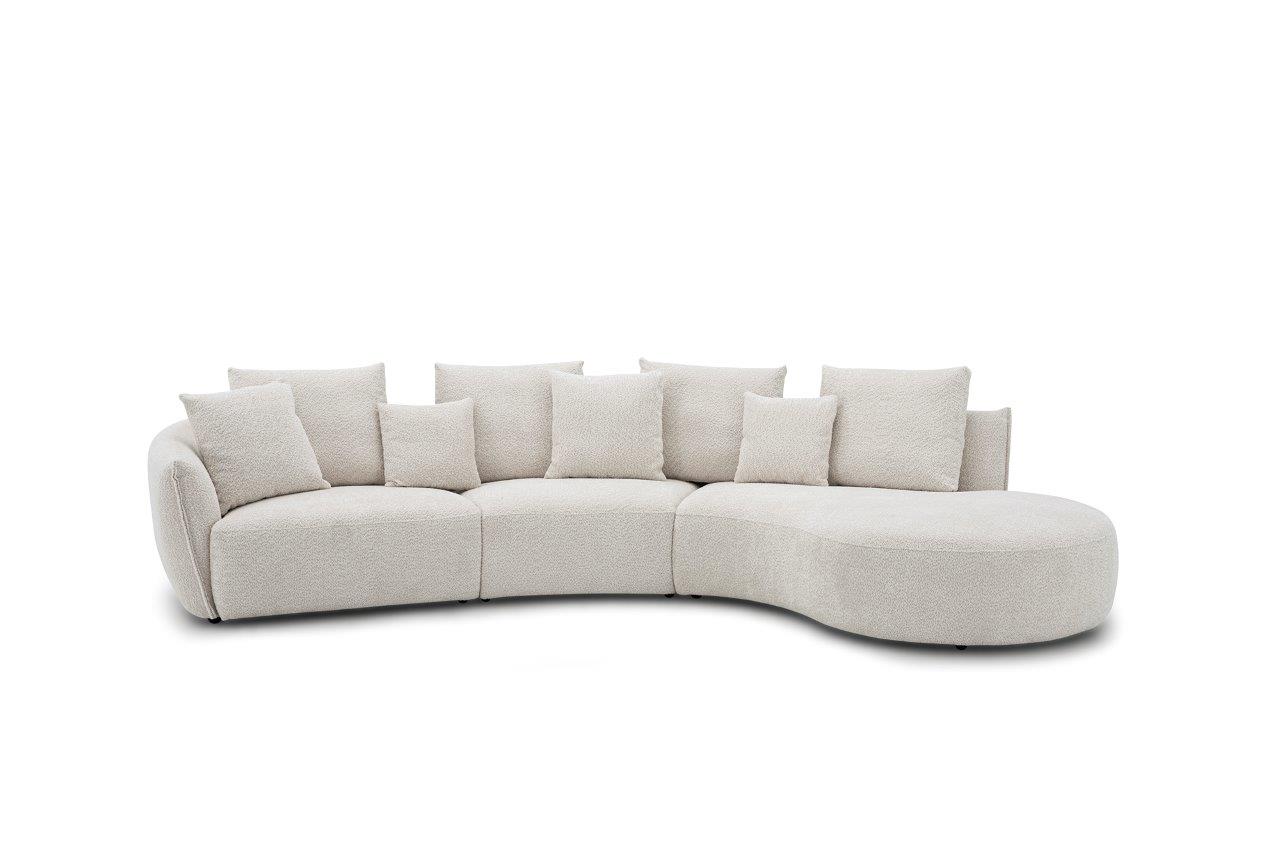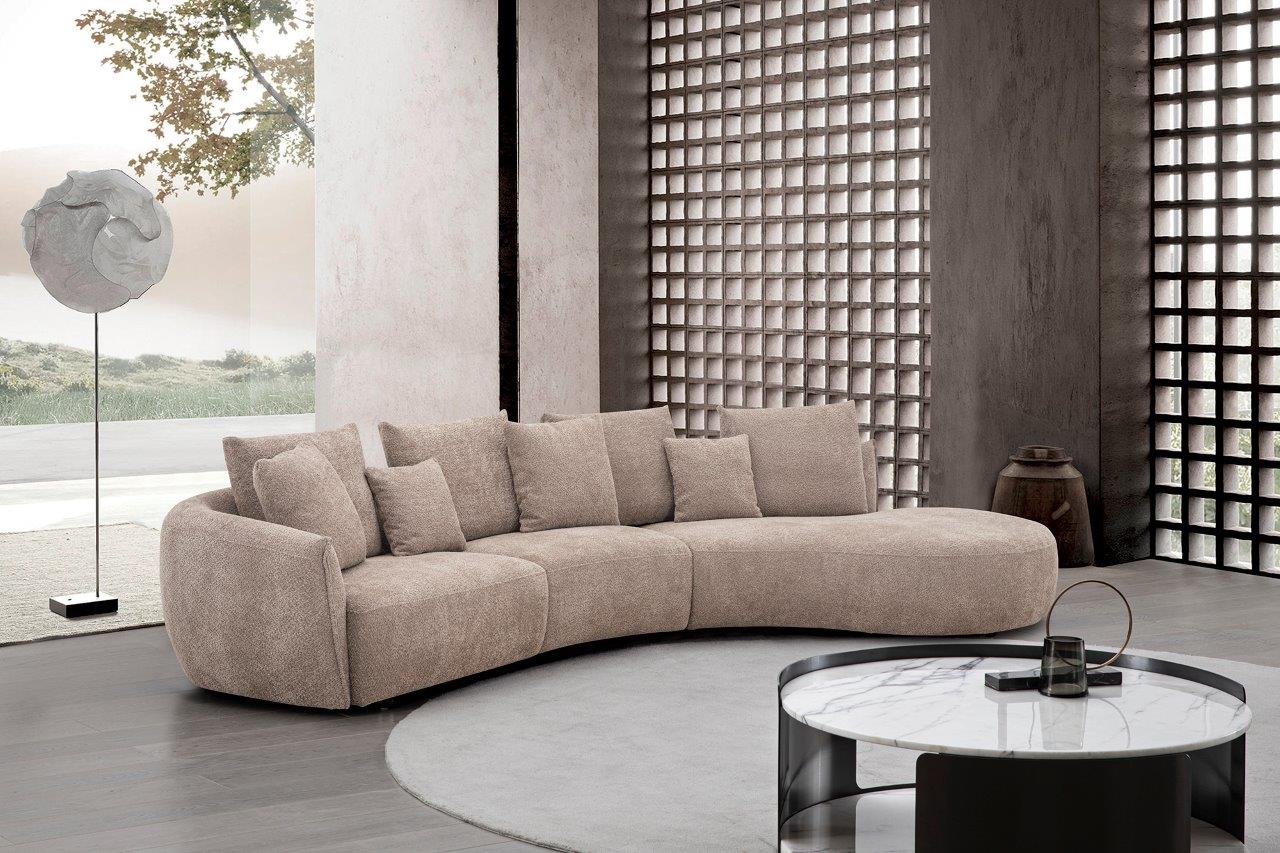 ספה פינתית עם גימורים מעוגלים, בעלת נוכחות מעודנת, מחבקת וכריות שמאפשרות
