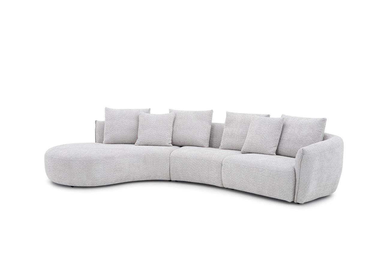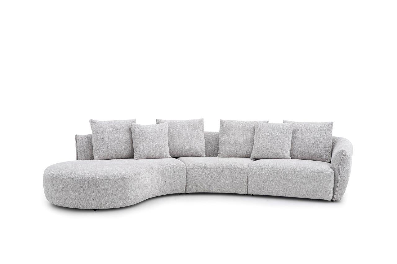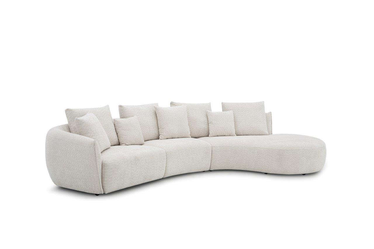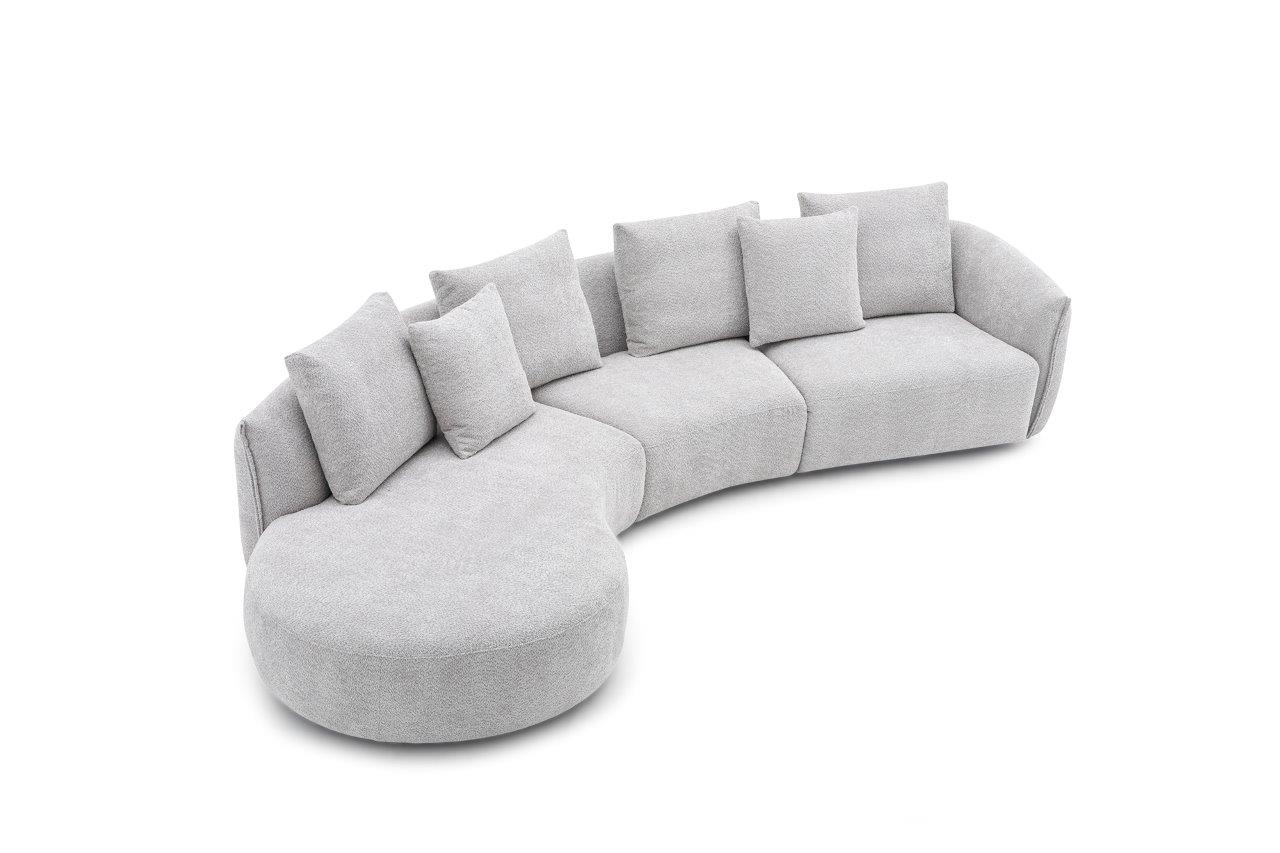 ספה פינתית עם גימורים מעוגלים, בעלת נוכחות מעודנת, מחבקת וכריות שמאפשרות
