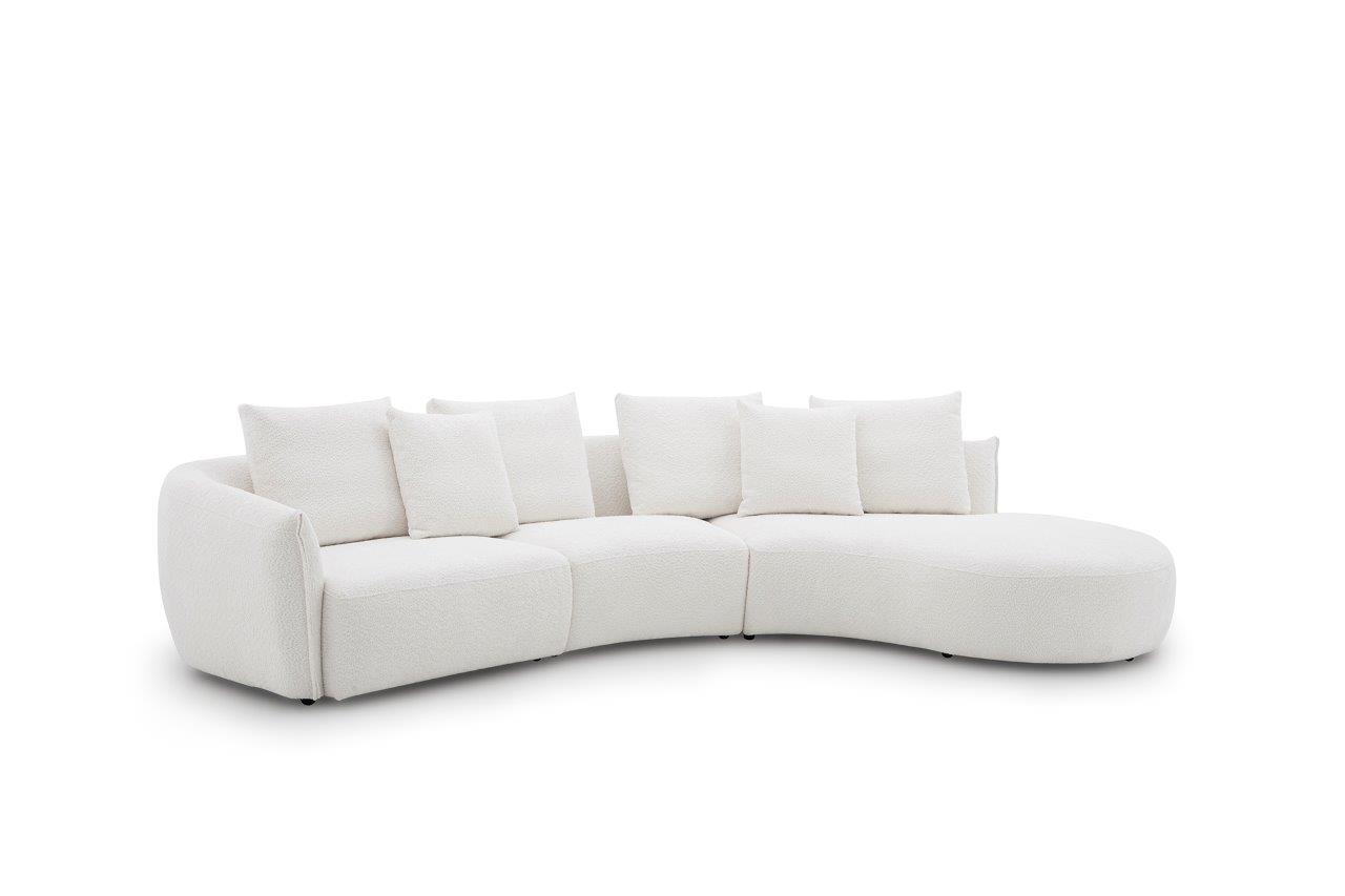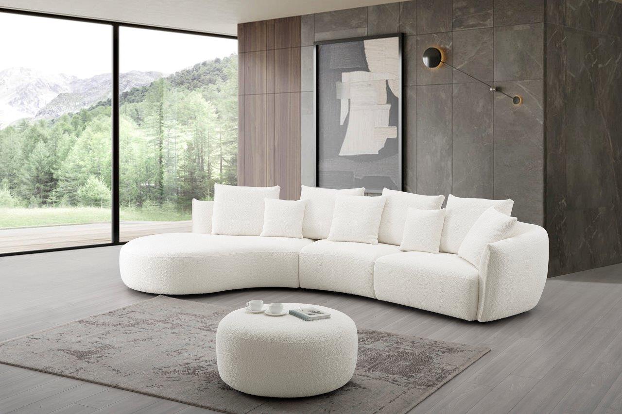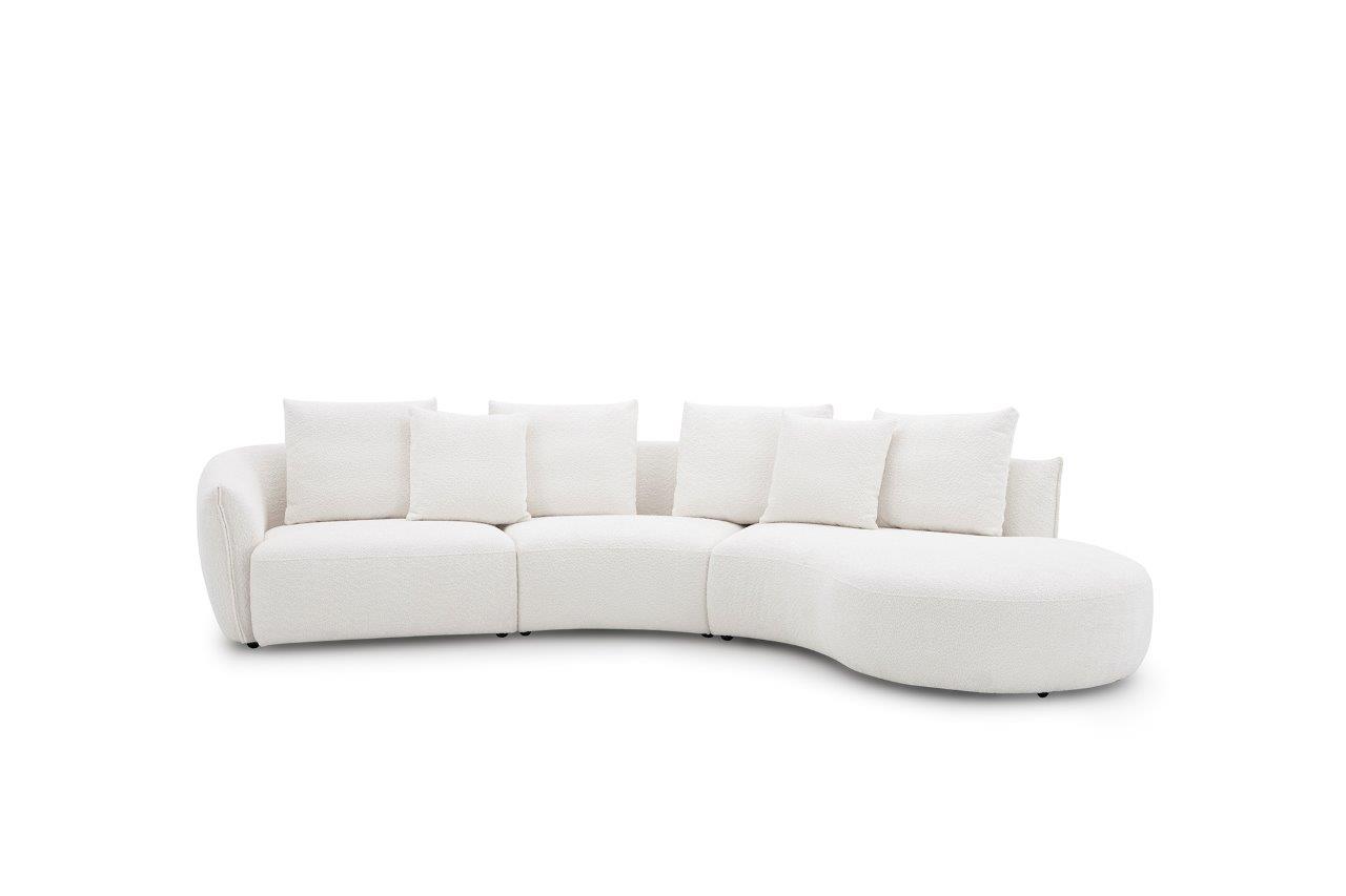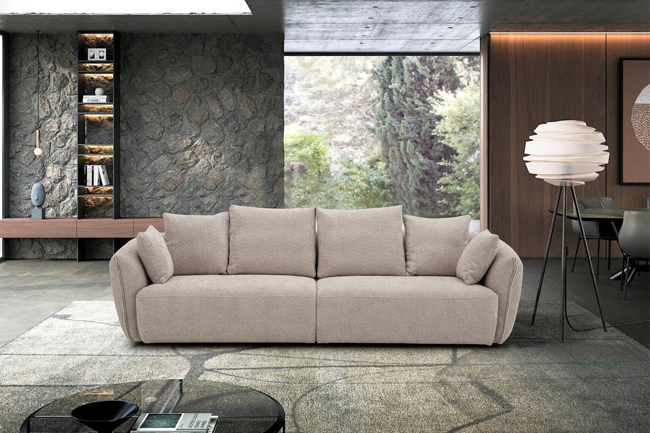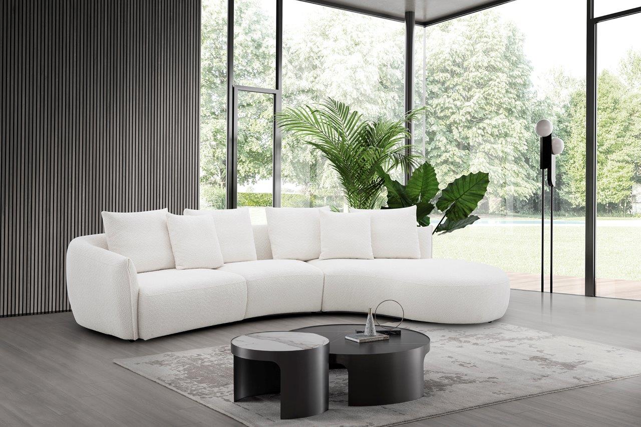 ספה פינתית עם גימורים מעוגלים, בעלת נוכחות מעודנת, מחבקת וכריות שמאפשרות