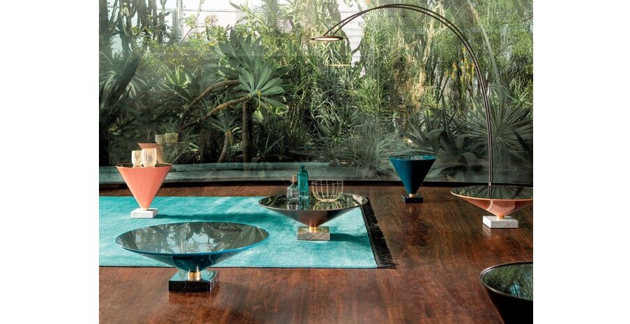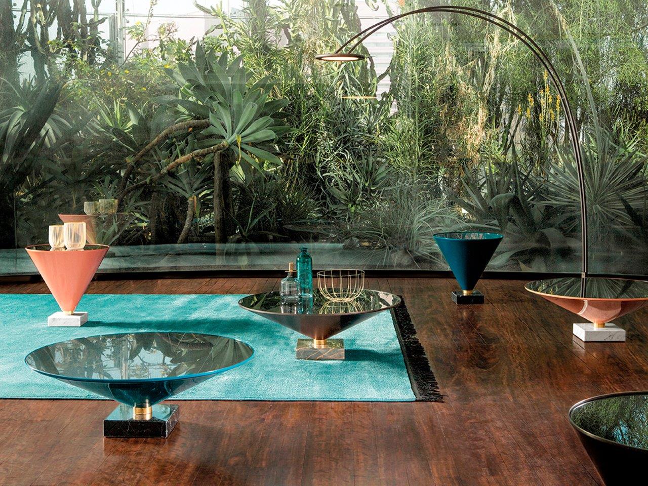 שולחן סלון זכוכית + שיש ומתכת (Q85)