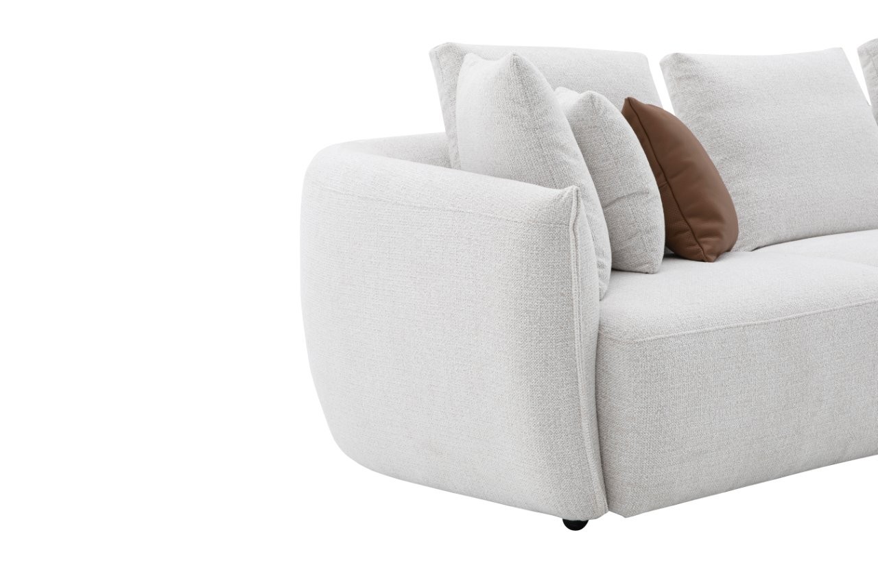 ספה פינתית עם גימורים מעוגלים, בעלת נוכחות מעודנת, מחבקת וכריות שמאפשרות